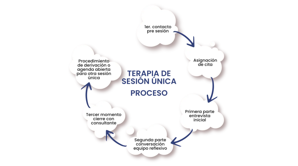 Nuestro modelo de Terapia de Sesión Única consiste en una terapia completa en la cual, a lo largo de una hora, puede llevar a promover cambios significativos, incluso para problemas que llevan tiempo arraigados en la vida de la persona.